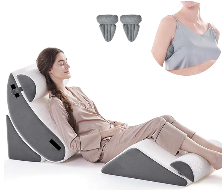 Post tummy tuck with muscle repair, I could not sleep in a recliner for one more night, so I literally had this multi-piece wedge pillow set delivered by the afternoon. Total lifesaver!